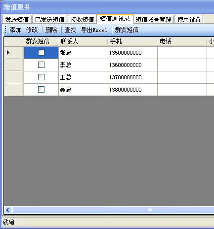 网站商务通客服后台,有发送短信功能及群发通讯录的功能,方便您随时给自己的朋友或客户发送短信。如(图2);